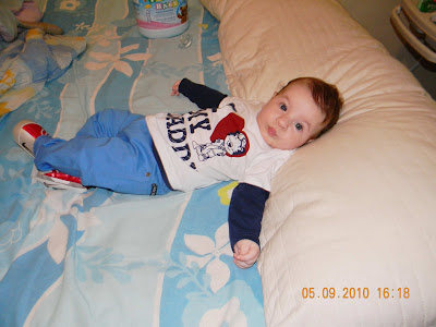 Bryan tá fogo! Agora o esporte dele é ficar se virando toda hora, não tem nem um segundo que eu vou lá desvirar e ele já vira denovo e abre aquele sorriso banguela que não tem como ficar cansada...rsrs